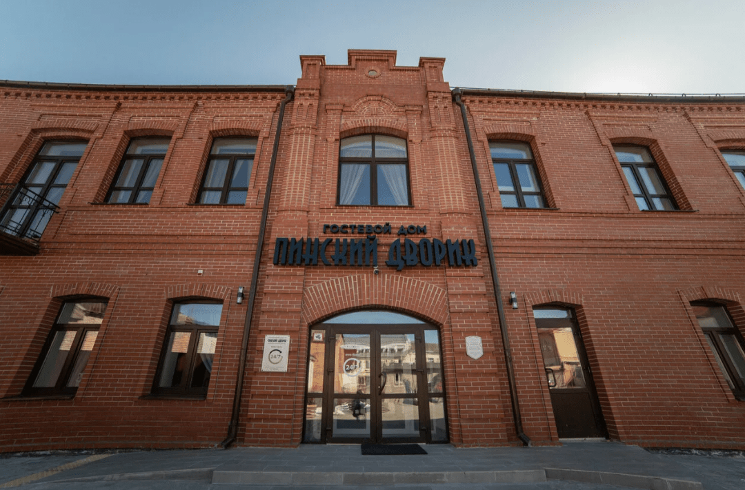 Под сводами кирпичного особняка, где когда-то звучали голоса школьников, нынче раскинулся гостевой дом «Пинский дворик». История его восходит к бурным годам, когда братья Дымич задумали возвести дом, что приносил бы доход.