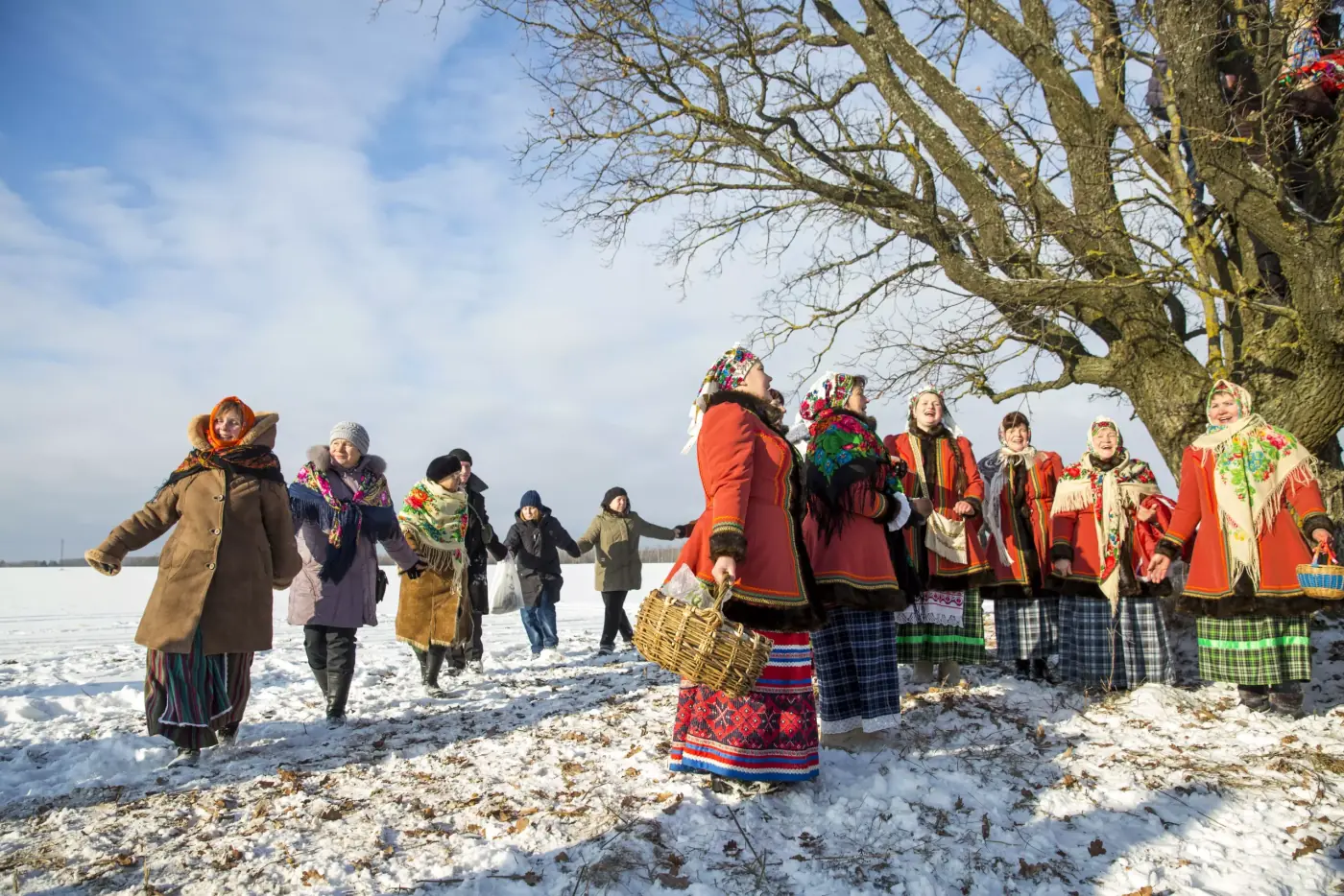 Обряд «Тянуть Коляду на дуб» занесен в Государственный список историко-культурного наследия. Энтузиаст и хранительница традиций обряда Нина Климович успела записать у старушек — жительниц села Новины Березинского района — воспоминания о рождественских празднествах и диковинном обряде. И каждый год с 6 по 21 января в Новинах и окрестных селах проходят колядные празднества, напоминающие гоголевские вечера на хуторе близ Диканьки. «Тянут Коляду на дуб» всегда в один и тот же день — 21 января: этим заканчивается цикл рождественских празднований. «Сноп-коляда» — то ли языческое божество, то ли образ женщины-роженицы, затягивают на одинокий дуб в поле далеко за деревней на удачу и на урожай. Сделать это поручают крепкому парню, а женщины вокруг становятся хороводом и распевают обращенные к Коляде песни. От дуба разбросают остатки кутьи — к хорошему урожаю, разожгут костер из соломы. А потом начнется катание на санях и качание в снегу. Попрощавшись с Колядами, начнут готовиться к Масленице.
