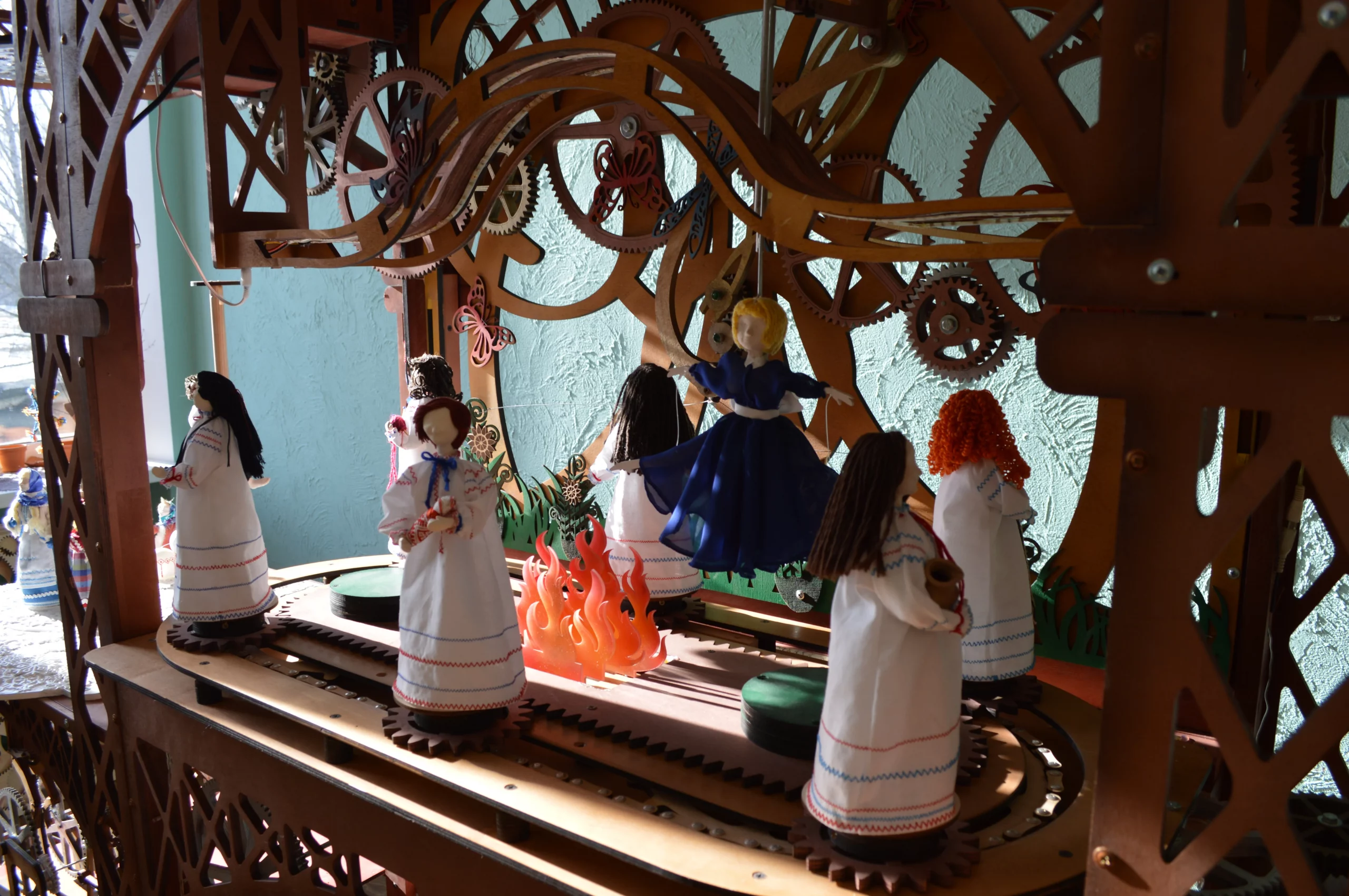 Мастер народных промыслов Андрей Мартынюк создал единственный в стране кинетический театр, куклы в котором двигаются под музыку. Фактически его можно назвать расширенным и модернизированным вариантом «Батлейки». У дзержинской «Балабухі» (это слово переводится как «Колобок») несколько сценических площадок на разных уровнях. Жанровые сценки раскрывают темы народных праздников – «Каляды», «Купалле» и «Дажынкі».