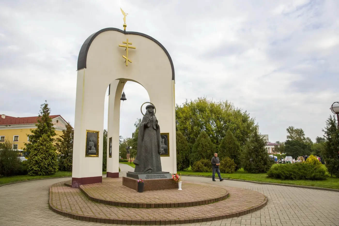 Бронзовый памятник последней представительнице княжеского рода Олельковичей, которая в 1984 году была канонизирована Белорусской православной церковью, был установлен в 2000 году в сквере на улице Максима Богдановича. Жест левой руки Софии означает призыв остановиться и задуматься. Над монументом возвышается арка с тремя сводами, на которых изображены старые церкви Слуцка, не сохранившиеся до наших времен. Авторами памятника являются скульптор Михаил Иньков и архитектор Николай Лукьянчик.