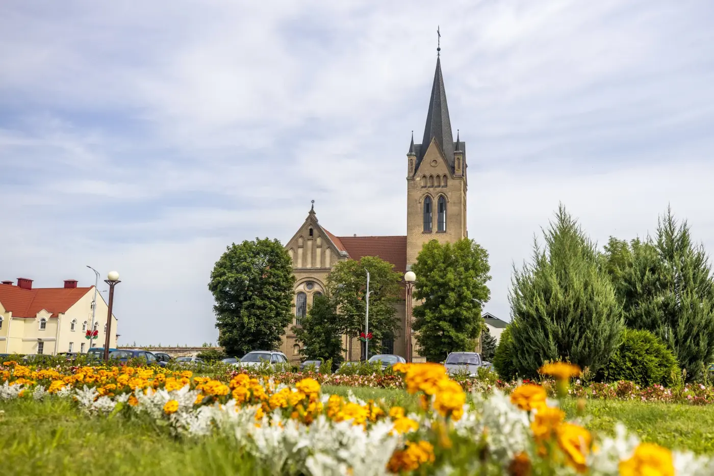 Костел Воздвижения Святого Креста построен по проекту архитектора Августа Клейна в неороманском стиле с чертами неоготики. Первый раз храм пострадал в Первую мировую войну, после Второй мировой войны святыня была закрыта. Сегодня костел выполняет функцию не только достопримечательности Беларуси, но и действующего храма.
