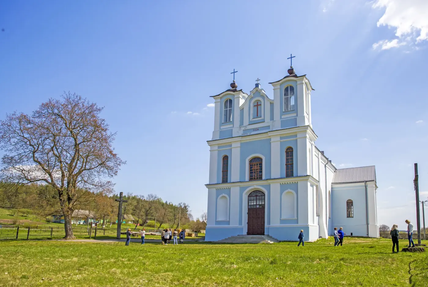 Один из старейших костелов Беларуси находится в деревне Вишнево. На фасаде костела можно увидеть цифры «1424». Это дата, когда на этом месте был построен первый деревянный католический храм, основанный самими князем ВКЛ Витовтом. Возведение каменного костела на этом месте началось в 1637 -1641 годах при участии шляхетского рода Хрептовичей. Костел уникален тем, что продолжал действовать даже во времена советской власти. Хорошо сохранился его интерьер, включая лепнину XVII века, резной деревянный алтарь XVIII века и росписи, выполненные белорусским художником Фердинандом Рущицем, который похоронен на кладбище при костеле. В середине XIX века построена брама-колокольня.