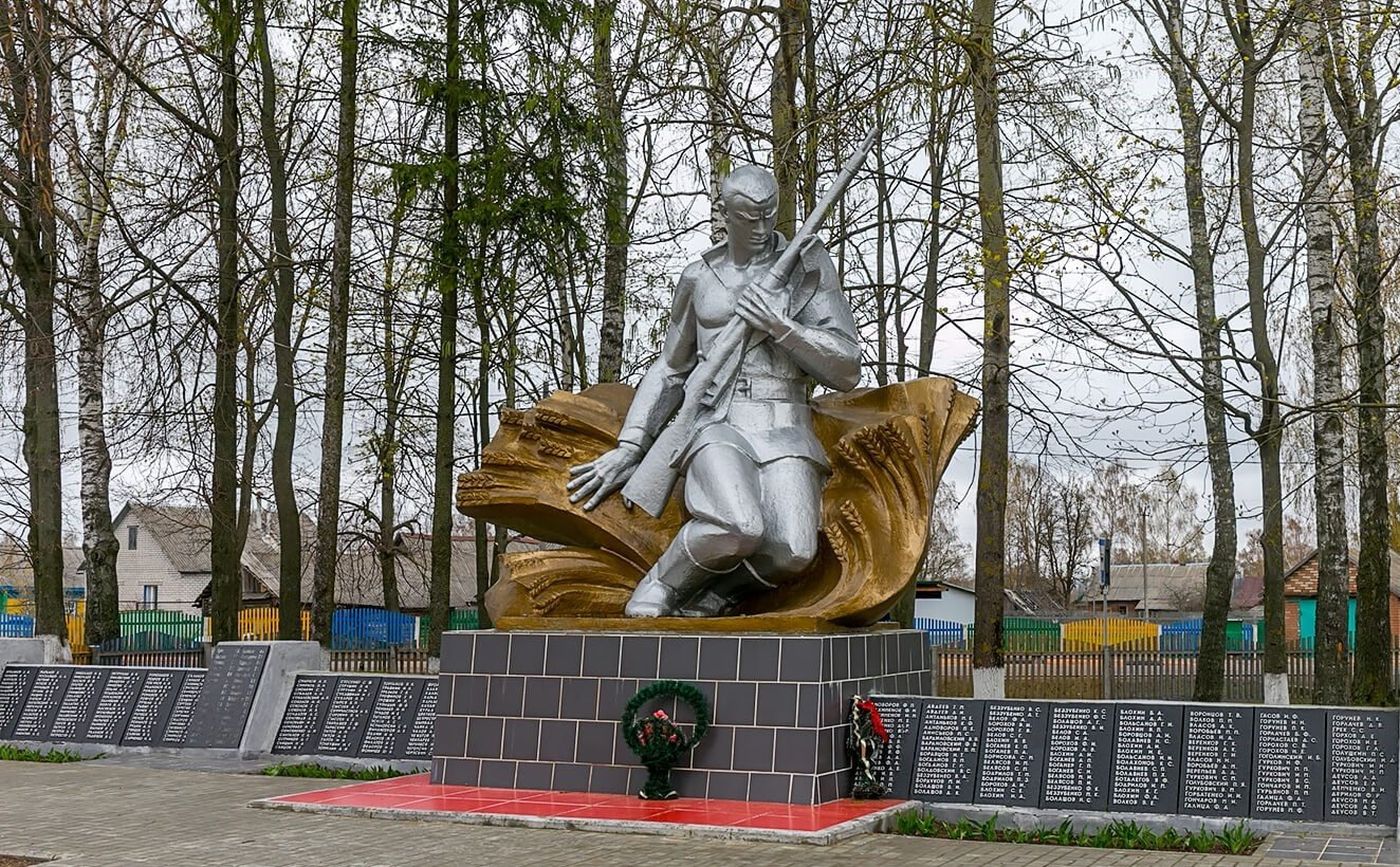 В 1943 году, во время осеннего наступления, войска Западного фронта освободили Дрибин от немецкой оккупации. В память о павших воинах, погибших при освобождении города и в других боях, была установлена братская могила, где покоятся 508 человек. В 1984 году над могилой был воздвигнут памятник — фигура солдата с автоматом, окруженная стелами с именами погибших.